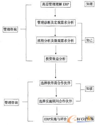 根據對國內外長期實踐經驗的總結,陳啟申老師在其《ERP——從內部集成起步》中談到,對ERP軟件的選型應當遵循以下幾個步驟(如圖),簡稱為“知理—知己—知彼原則”。