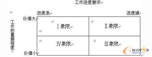 參見下面的矩陣圖。對于監理,在工作分解(WBS)的基礎上,根據任務的緩急和重要程度特性,我們可以把最近一段時間(半月、一周或一天)的工作根據其特點分別放在的矩陣圖的4個象限中,進行檢查、分析,并提出監理意見。
