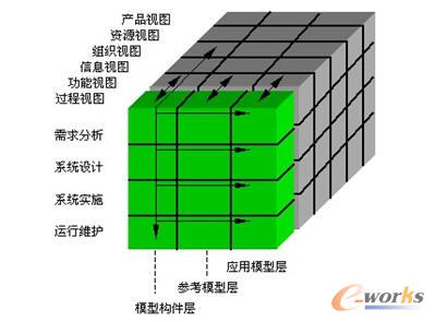 目前,較為流行的為集成化企業(yè)建模框架,如圖所示:是一個由生命周期維、視圖模型維、通用性層次維組成三維立方體結構,如圖1所示。