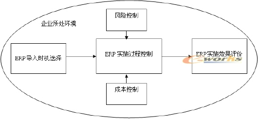 按照基于系統論思想的ERP實施模型,企業在實施ERP的過程可以分為四個步驟,即企業所處環境分析、ERP導入時機選擇、ERP實施過程控制、ERP實施效果評價,其中,實施過程控制又涉及到成本控制和風險的控制,通過兩方面的控制來降低ERP實施過程中的風險和成本。