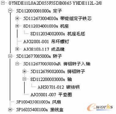 以0YHDE11L0A2D055F5SDB0865(YHDE112L-2/8型電機)為列,其父子結構圖(4)如下: