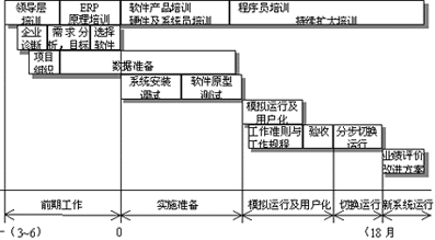 以上我們就對ERP的實施過程作了簡要的介紹。當然,這些階段是密切相關的,一個階段沒有做好,決不可操之過急進入下一個階段,否則,只能是事倍功半。值得注意的是,在整個實施進程中,培訓工作是貫徹始終的。我們只是對第一個階段的領導層培訓和MRP II原理培訓作了詳細的介紹。而那些貫穿于實施準備、模擬運行及用戶化、切換運行、新系統運行過程中的有關培訓,如軟件產品培訓、硬件及系統員培訓、程序員培訓和持續擴大培訓也都是至關重要的。這個道理,應該說是顯而易見的。因為只有員工才是系統的真正使用者,只有他們對相關的ERP軟件產品及所要求的硬件環境有了一定的了解,才能夠保證系統最終的順利實施和應用。