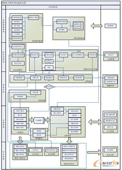 建設上線的供應鏈應用功能結構及數據關系如下圖: