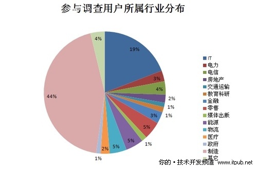 調查顯示,制造業依然是ERP應用的主要領域,占到所有行業比重的44%。其他行業ERP應用的情況為:IT業(19%)、電力行業(3%)、電信行業(4%)、房地產(2%)、交通運輸行業(1%)、教育科研(1%)、金融行業(3%)、零售行業(5%)、媒體出版行業(1%)、能源行業(5%)、物流行業(5%)、醫療行業(2%)、政府(1%)、其他(4%)。其中4%的其他行業包括安防、貿易、中介、服務等。