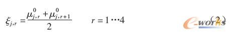 設戰略效益評估標準{μ0j,k}={9,7,5,3,1};其閾值向量ξj,r={ξj,1,ξj,2,ξj,3,ξj,4,}。向量{ξj,r}由下式來確定: