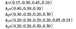 A中數據分別是Cl,C2,C3,C4指標所占權重,由于離散制造業在實施ERP前要著重考察企業已有信息系統的應用水平,故信息化基礎設施(C2)和現有信息系統運行評價(C3)所占權重較大,而信息化組織評價指標(C1)是考察企業對信息化重視程度及支持程度的指標,故所占權重僅次于c2,C3,具體數值是綜合了離散制造業的數據及相關文獻,這里不再敘述;A。中數據分別對應Cll,C12,C13所占權重(A:,A,,A。類同)。