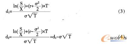 顯然,企業信息化項目為企業掙得新產品開發的投資機會。傳統凈現值對該項目的評價明顯存在不足。需要用含發展機會的凈現值進行評價。根據期權定價模型。該投資機會的價值實質上是以初始投資為約定價格的一個買方期權,其標的物為投資項目的價值即投資開發新產品的價值,運用Fischer Black模型可計算出這個投資機會的價值。