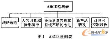 最早是由MRPII的先驅者oliverwight于1997年提出,共20個問題。這20 個問題按技術、數據準確性和系統使用情況分成三組,每個問題均以“是”或“否”的形式來回答。第二版的檢測表擴充為25個問題,且增加了一個分組內容:教育和培訓。在20世紀80年代,ABcD檢測表得到了進一步的改進和擴充,推出了第三版。其覆蓋范圍已不限于MRPn,還包括了企業的戰略規劃和不斷改進過程。第四版的ABCD檢測表于1993年由olive:wight公司推出,該檢測表也已不再是幾十個問題的表,而是按基本的企業功能劃分成五章:戰略規劃、人的因素和協作精神、全面質量管理和持續不斷的改進、新產品開發、計劃和控制過程,如圖1所示。