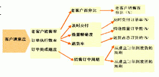 ERP項(xiàng)目效益評(píng)估,應(yīng)該緊緊圍繞企業(yè)關(guān)鍵業(yè)績(jī)指標(biāo)(KPI)體系來(lái)進(jìn)行。有關(guān)KPI體系的知識(shí),利用Google等工具搜索相關(guān)介紹可以查閱相關(guān)資料,比如:對(duì)SAP軟件的BW模塊的介紹、對(duì)企業(yè)管理工具平衡記分卡(BSC)的介紹、對(duì)Covics EasyBI軟件產(chǎn)品的介紹等。KPI體系是一個(gè)完善科學(xué)的績(jī)效考量體系,所涉及的KPI指標(biāo)多達(dá)幾百個(gè),這些KPI指標(biāo)分別可以列屬到財(cái)務(wù)管理方面、研發(fā)和質(zhì)量管理方面、供應(yīng)鏈管理方面、銷售和分銷管理方面等。舉例來(lái)說(shuō):企業(yè)對(duì)“客戶滿意度”這一個(gè)KPI指標(biāo)的考量,與“老客戶銷售率”、“訂單執(zhí)行效率”、“訂單處理速度”這3個(gè)細(xì)分的KPI指標(biāo)相關(guān);再進(jìn)一步細(xì)分,“訂單執(zhí)行效率”與“及時(shí)交付”、“數(shù)量精確度”和“退貨率”這3個(gè)指標(biāo)有關(guān);如果再進(jìn)一步細(xì)分,所需要考量的KPI指標(biāo)都可以一一對(duì)應(yīng)和落實(shí)到ERP系統(tǒng)執(zhí)行的每一個(gè)步驟和所輸入和生成的每一個(gè)數(shù)據(jù)。如圖示: