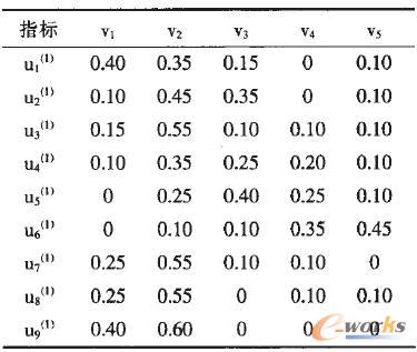 考慮企業(yè)的各部門需要及各部門間的信息集成程度,也考慮到系統(tǒng)實(shí)施的風(fēng)險(xiǎn)問題,制定評價(jià)的指標(biāo)集U=(u1(1),u2(1),……,u9(1)),各指標(biāo)如下:
