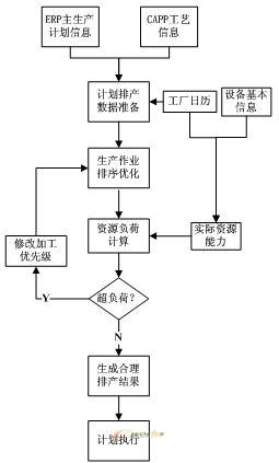經過作業排序后,每臺設備都安排了加工對象,由于工序的加工提前期已知,同時工廠日歷和工作中心的定額能力也已預先設置,即可計算出設備加工每道工序的開始、完工時間,從而可以得到設備的累積負荷,如果累積負荷超過設備的實際負荷能力,則必須通過調整工序的加工優先級,進行重新排產,或者采取加班、外委等方式,滿足生產條件。