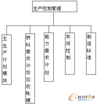 生產控制管理是一個以計劃為導向的先進的生產、管理方法。首先,企業確定它的一個總生產計劃,再經過系統層層細分后,下達到各部門去執行。其模塊組成見下圖。