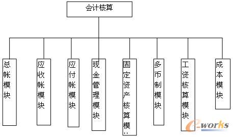 會計核算主要是記錄、核算、反映和分析資金在公司經濟活動中的變動過程及其結果。它由總賬、應收賬、應付賬、現金、固定資產、多幣制等部分構成,其模塊組成見下圖。