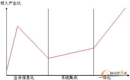 企業(yè)信息化是一個(gè)漫長(zhǎng)的過(guò)程,需要幾代人付出艱辛努力,一般要經(jīng)歷業(yè)務(wù)信息化,系統(tǒng)集成和一體化三個(gè)歷史階段(圖1)。