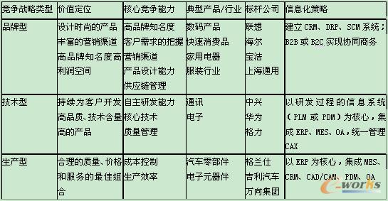 不同類型的制造企業(yè)在不同競爭戰(zhàn)略下的信息化策略
