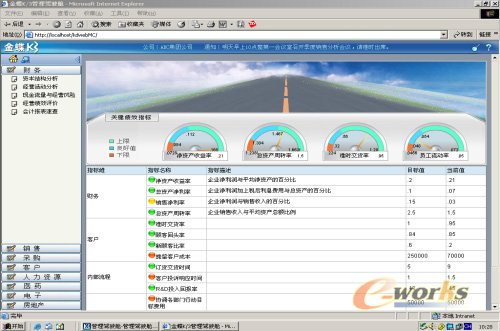 2003年,金蝶經過充分的市場調研和客戶反饋,總結出企業績效管理是集團財務管理的核心,“企業績效管理”將類似“集中財務”這個管理理念一樣,為中國大部分企業集團所接受!捌髽I績效管理”通過目標設定、企業建模、計劃預算、監控、分析評估、報告的循環流程將集團財務的戰略執行、公司治理、價值評估、決策支持、全面預算、資金管理、業績評價、風險控制、財務報告等核心工作統一為一個整體,因此,企業績效管理不僅僅是一套戰略管理工具,也是劃時代的財務管理創新!