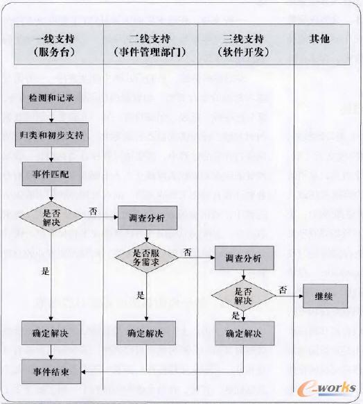 企業在事件管理過程中通常會出現的一個誤區是未能分清事件管理同問題管理的區別,在處理事件過程中注重事件具體原因和解決力、法,未將恢復因此中斷的服務放在事件管理的首位,將事件管理問題化。