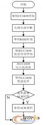 按照硬件電路設(shè)計(jì),系統(tǒng)軟件編程的基本思路[6]是:先對SPI端口、CC2430控制端口初始化;使能SPI端口、UART端口和ADC;對CC2430芯片初始化;開啟接收機(jī)后,就可以運(yùn)行任務(wù)程序,實(shí)現(xiàn)接收或發(fā)送數(shù)據(jù)。發(fā)送和接收程序流程圖如圖4和圖5所示。