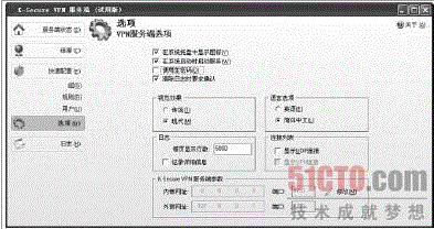 在K-Secure VPN 服務器程序管理窗口左側單擊“選項”按鈕,在右側窗口中(如圖3 所示)選中“使用主密碼”項,在彈出窗口中輸入主密碼即可。這樣,當調整K-Secure VPN 配置(如修改規則)時,就必須輸入該密碼。