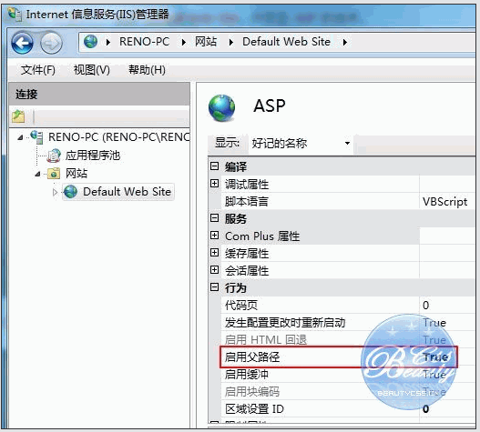 六、IIS7中ASP 父路徑 是沒有啟用的,要 開啟父路徑,選擇True,搞定父路徑選項。