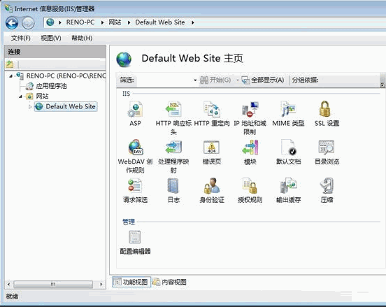 四、現在進入到IIS7控制面板。