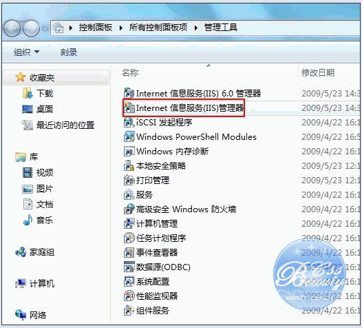 三、安裝完成后,再次進入 控制面板,選擇 管理工具,雙擊 Internet(IIS)管理器 選項,進入IIS設置。