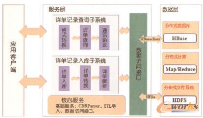 數據采集子系統對信令分析系統產生的用戶上網詳單數據進行實時解析,然后調用分布式數據框架hadoop的接口將數據導入到分布式數據庫中;分布式數據庫平臺建立在分布式文件系統HDFS之上,由HDFS負責文件的復制、校驗、備份等操作,分布式數據主要負責提供數據封裝接口,根據數據特點建立數據模型,實現keyvalue的數據庫查詢;數據的分析和挖掘子系統調用底層的分布式數據庫HBase接口,實現數據查詢、分析、展現等功能,同時給其他系統提供基本的功能接口。