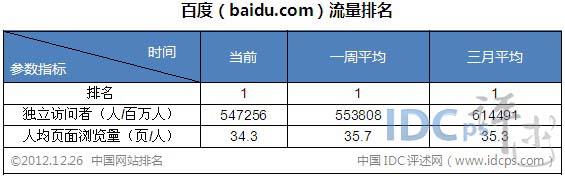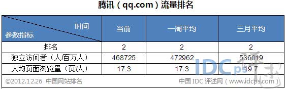 下面,IDC評述網與大家一起了解上述五大網站的流量排名情況: