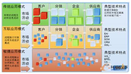 SOA的內在核心在于將原來一個個“大塊”系統拆分成一個個標準接口的“小塊”系統,把軟件變成像現在的積木玩具一樣,成為一個個的“小塊”(SOA把企業基本應用封裝成一個個獨立的服務,如企業中財務應收發票的處理就是一個“小塊”),可以反復拼接,但是他們之間要有一系列共同遵循的標準(獨立服務之間的接口遵循一系列統一的標準),并且有一定的靈活性,可以讓企業根據自己的需要創建企業個性化的系統,同時當企業有新的業務需求或業務發生變化時,只需再購買或更換所對應的小塊(獨立服務)即可。