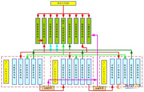 由于以上的不同,造成了該企業的ERP架構如下圖所示: