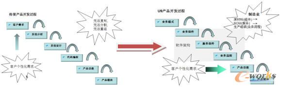 在U9的開發過程中,用友一開始并未直接投身于產品開發當中,而是花了半年以上的時間,從以往積累的多個客戶當中提煉出了不同企業的商業模式,然后以商業模式為指向,來搭建U9的軟件架構。