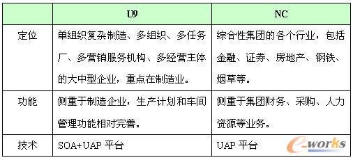 U9發布后,用友面向中大型企業就有了2個產品可提供:NC和U9,雖然二者都是面向中大型企業的,但各有側重點。