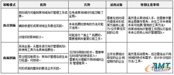 針對以上四類知識管理實施策略,其具體的優劣勢對比,以及適用對象分析如下: