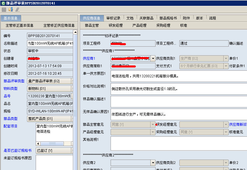 - 供應(yīng)商評審、物料認(rèn)證過程都在OA中完成,評審過程中的信息難以在供應(yīng)商信息、物料信息中體現(xiàn),造成信息資料與評審過程的孤立,無法實(shí)現(xiàn)過程管控;
