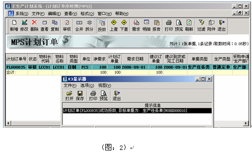 2)請將該100個“計劃訂單”投放成“生產(chǎn)任務(wù)單”,并下達(dá)該生產(chǎn)任務(wù)單,見下圖:2。