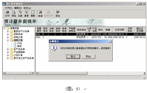 首先在進(jìn)行選單計算前,用預(yù)計量鎖單功能對銷售訂單SO01進(jìn)行鎖單(圖:3)。