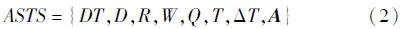 式中:DT={dtn},代表某工位上裝配零件種類的集合!鱐={△tdtn[wkql,wk+xql+y]},表示dtn種類的零件從(工位wk,工序狀態(tài)ql)到(工位wk+x,工序狀態(tài)ql+y)經(jīng)歷的額定時(shí)間集合。A={A[tdtn]},代表所有零件裝配工藝的矩陣集合,令A(yù)'={A'[di]},表示所有零件實(shí)時(shí)裝配的進(jìn)度狀態(tài)集合,A[d*]與A'[di]同為k行l(wèi)列的矩陣,行代表工位wk,列表示工序狀態(tài)ql,其中α[dtn]k,l=1,表示dtn種類的零件必須經(jīng)過工位Wk并處于工序狀態(tài)ql,α[dtn]k,l=0,代表此種類零件無需經(jīng)過此工位進(jìn)行此道工序的操作;α'[di]k,l=1,表示零件di已經(jīng)過工位wk且處于工序狀態(tài)ql,α'[di]k,l=0,表示該零件并未經(jīng)過此工位。