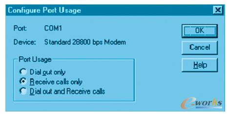 對于服務器,port usage的最小選擇是receive calls only。為調制解調器選擇了端口用法后即可點擊ok返回。