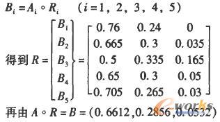 (2)CG公司采納效能模糊綜合評(píng)估。咨詢?nèi)藛T通過對(duì)CG公司中層及高層管理人員的走訪、調(diào)查問卷,對(duì)CG公司的生產(chǎn)系統(tǒng)、管理流程等各方面進(jìn)行了調(diào)查,利用專家打分及與500強(qiáng)企業(yè)信息化成功因素的對(duì)比分析,得到如表2所示的指標(biāo)權(quán)重,其中:A1—A5分別代表表1中C1—C5五個(gè)二級(jí)指標(biāo)所占權(quán)重,Ai中各元素對(duì)應(yīng)Ci中相應(yīng)二級(jí)指標(biāo)權(quán)重,即A=(0.17,0.2,0.18,0.15,0.3)。