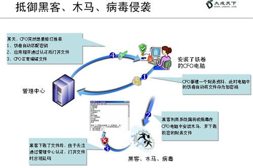 前面已經有介紹,一個機密電子文檔的內容盜取,一般方法和途徑都是有很多的,比如企業員工無意識的把含有敏感信息的機密電子文檔通過網絡發送出去,比如借助U盤、移動硬盤及MP3播放器等移動存儲設備拷貝機密電子文檔,比如通過專用的電腦屏幕截取軟件截取電子文檔的內容、比如向企業內部網絡遠程植入病毒或惡意木馬,甚至由企業員工直接搬走存儲有機密電子文檔信息的筆記本電腦等等,所以在這種情況下,任何單一的企業電子文檔安全保護方式都是有缺陷的,對企業電子文檔的安全保護,必須是一套嚴密而完整的企業級電子文檔保護解決方案。