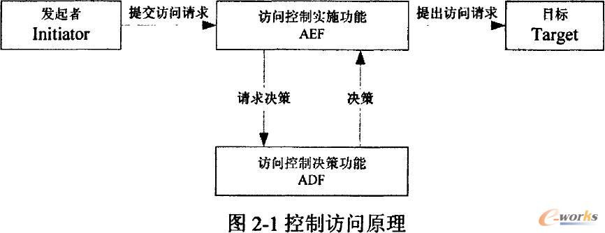 在發起者(主體)和目標(客體)之間插入一層訪問控制實施功能模塊,當發起者向目標提交訪問請求時,攔截這一請求,并將其轉送到訪問控制決策功能模塊,對該請求進行決策判斷。訪問控制實施模塊收到決策模塊回送的決策之后,實施該決策,放棄請求或者通過請求。