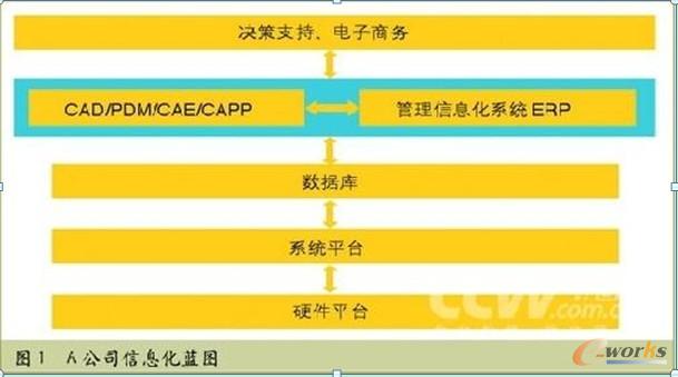 A公司產品工藝門類多,涉及汽車行業80%的工藝類別,如機加、沖壓、注塑、噴漆、涂裝、鑄造、裝配等。經過近幾年的快速發展,企業規模迅速擴大,管理、文化和團隊未能同步提升的問題也日益凸顯。除工程部應用PRO/E、UG、CATIA和中望CAD軟件,以及公司行政辦公應用OA系統外,生產物流系統全是手工操作。由于缺乏統一的信息共享平臺,業務運作效率低、出錯多,部門間協調工作量大、溝通成本高。