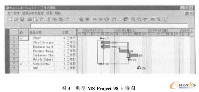 如何選擇軟件是該方案的一個關(guān)鍵,所選軟件必須要能夠很好地集成到Windchill PDM的工作流管理系統(tǒng)中,而且必須具有對工作流的監(jiān)控、統(tǒng)計、分析和報表等功能。在應(yīng)用中,我們選擇Microsoft公司發(fā)行的軟件MS Project98,因?yàn)樵撥浖芎玫鼐邆湟陨弦蟆?/P>