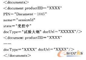 保障兩個系統中信息的一致性和可追溯性,TDM和PDM兩系統間,首先實現的設計基礎數據和文檔類數據等基礎數據的集成。PDM系統通過集成接口向TDM系統提供各項基礎數據,包括:任務單編號、名稱、型號、研制階段,試驗類型、試驗地點、開始時間、結束時間、試驗目的、試驗描述、試驗專業、參試部門、外協單位、主辦單位、承辦單位等。TDM系統可通過獲取基礎信息,建立產品樹與試驗任務。同時可通過集成接口與PDM端XML的配套使用,使TDM人員可在PDM端進行文檔的瀏覽。