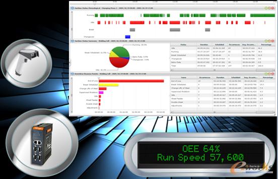 Shoplogix的產品是通過掃描槍掃描生產人員的工號和停機的時間,每一個停機的時間都對應一個條碼號,同時還有質量維修時間。但Shoplogix的產品不是僅僅通過掃描來采集數據的,如果機器的PLC是開放的,首選是從PLC上采集數據。