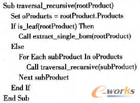 當訪問到一個節點,先判斷其是否一個終端節點,若是終端節點,則對其進行提取屬性的操作,若是中間節點,則遞歸地調用該過程,由此達到處理任意層數產品樹的目的。