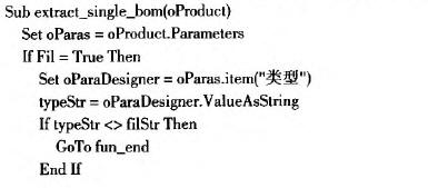Product對象:該類型的對象代表產品文檔中的一個產品節點。CATIA產品文檔將一系列產品通過裝配組織成一個產品樹,每個產品節點可以有零到多個子節點,除了根節點以外每個產品節點都只有一個父節點。每個產品文檔有唯一的根節點,且該根節點不能更換。對于裝配進產品的零件.CATIA會生成一個簡單的產品節點對其包裝,使之成為一致的產品樹。每個產品節點可以有若干屬性,本程序主要對這些屬性進行提取與統計。對于已經獲得的產品節點,可以通過調用其Products方法獲得其子節點的集合對象,該對象是一個集合對象,可以用For Each型的循環方便地遍歷其中每一個Product對象,如圖1。