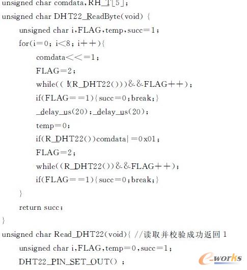 AVR單片機(jī)讀取單個(gè)DHT22的子程序如下: