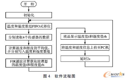 核心板軟件包括3個(gè)部分:4個(gè)傳感器信息采集及處理、液晶顯示和PC溫濕度信息上傳。這里僅討論4個(gè)傳感器信息的采集及處理。