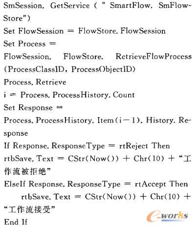 SmarTeam擁有強大的二次開發(fā)接口API函數(shù),在利用VB6.0的基礎上,編制開發(fā)了工作流反饋優(yōu)化系統(tǒng)。首先,通過工作流捕捉來獲取其最新狀態(tài),然后,根據(jù)優(yōu)化系統(tǒng)工作流程來確定如何通知相關人員,最后,相關人員在收到系統(tǒng)通知提醒后打開工作流,掌握工作流流程狀態(tài),為相關工作做好準備并及時完成任務。
